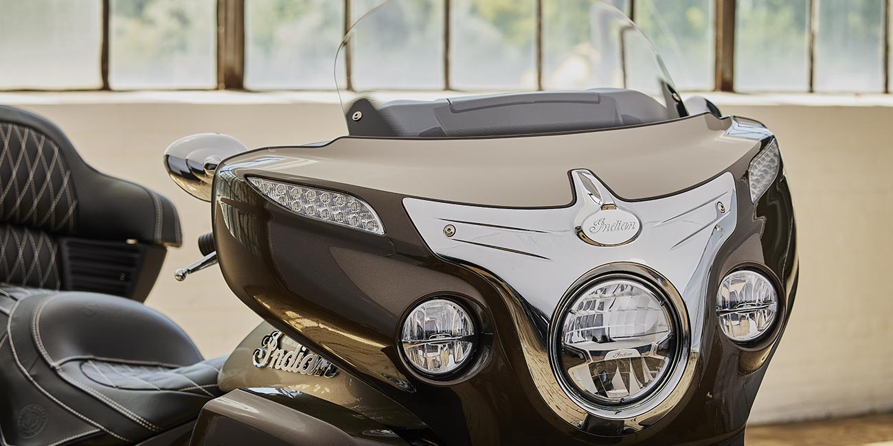 | 標準装備 | RIDE COMMAND搭載7インチタッチスクリーン、電動フロントガラス、ドライビングライト、ハイウェイバー、合皮シート(ライダー/同乗者セパレートヒートコントロール)、グリップヒーター、アジャスタブルパッセンジャーフロアボード、36.2ガロン収納、リモコン付ハードサドルバッグ&トランク、ライディングモード選択可能、リアシリンダー停止、ABS、クルーズコントロール、キーレスイグニッション、Bluetooth®、USB、スマートフォン対応入力、ウェザーバンド、12V充電ポート |